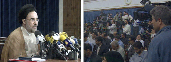 | Tehran, Aug 28, IRNA -- Iranian President Mohammad Khatami Wednesday vowed to work toward passage of a bill in Majlis that would strengthen his authority in the country as intended by the Iranian Constitution. Khatami, speaking in a press conference, regretted that certain internal forces are trying to shrink his authority as president in direct contrast to constitutional provisions. "I, as the president of the Islamic Republic, have two major duties to perform--hold the reins of government and see to it that the constitution is implemented," he said. "However, I regret seeing the absolute right of the president of the Islamic Republic to supervise implementation of the constitution being occasionally denied," he added. Khatami said that he was sorry to see his notices of specific instances of constitutional violations at times being ignored. The president pointed out that during the presidency of Ayatollah Seyyed Ali Khamenei, the current Supreme Leader of the Islamic Revolution, a bill was approved in Majlis giving the president the right to act on controversial cases where issues demanded a minimum review by the administration in the national interest. He regretted that he was not currently made to enjoy the privilege. |
